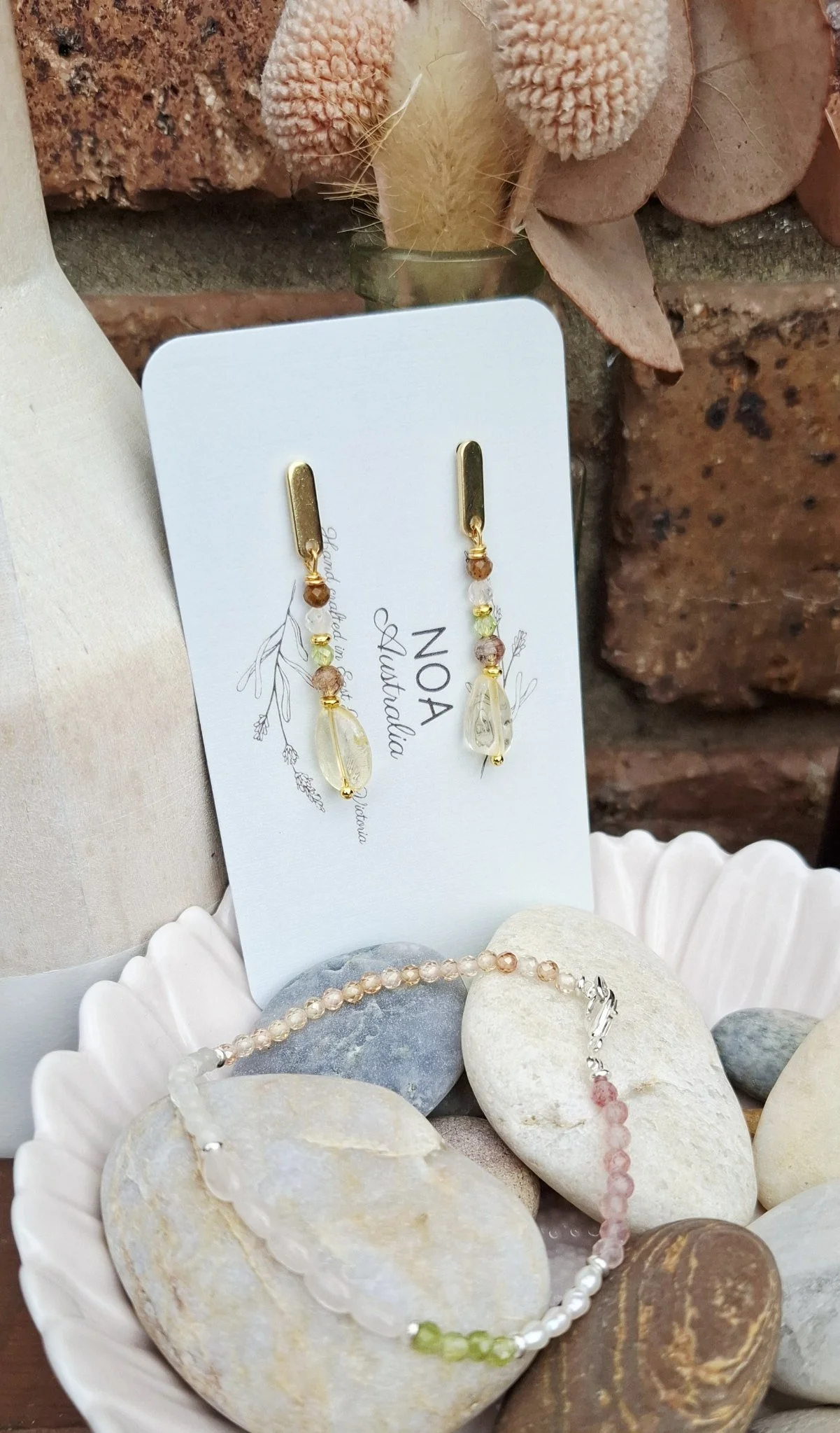 NOA’s signature mermaid collection highlights the natural variations of colour, texture and shape found in gemstones and pearls no two of these pieces will ever be the same. Inspired by Australian nature, where the beauty of the desert, beach and forest can all intertwine.