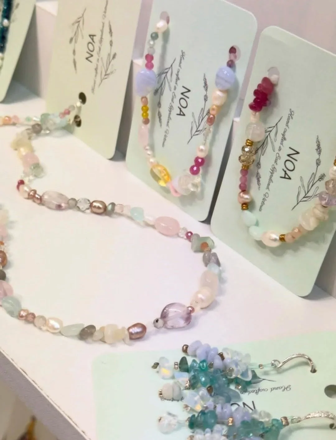 NOA’s signature mermaid collection features beautiful freshwater pearls and gemstones arranged in the most stunning abstract chaos. This collection showcases my design skills in colour and composition. Making something look deliberately random yet cohesive is not as simple as it looks. Check it out here more items added soon!